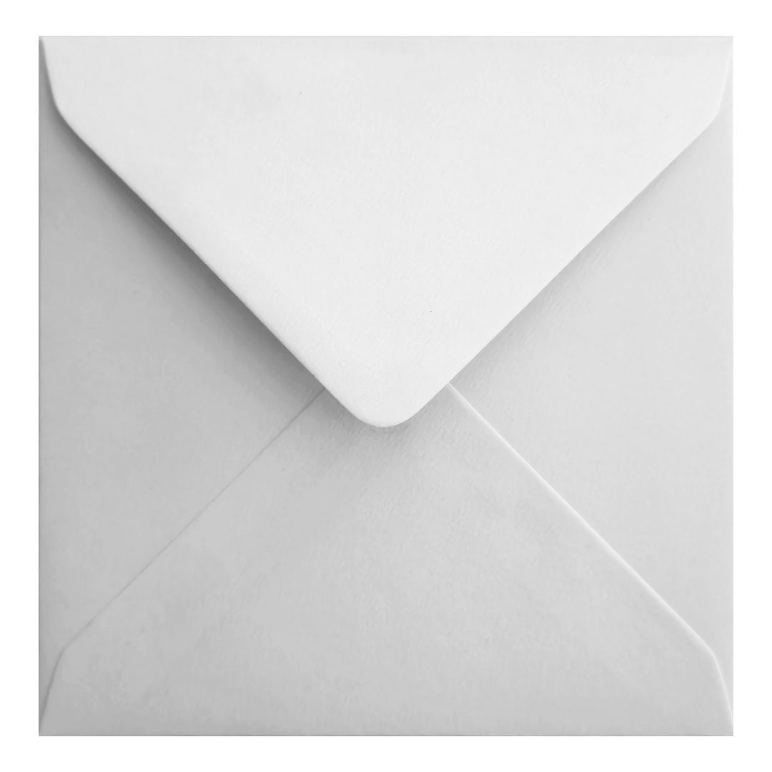 Alabaster White Small Square Envelope. Gummed Flap. White 110gsm Textured Finish. 130mm x 130mm.