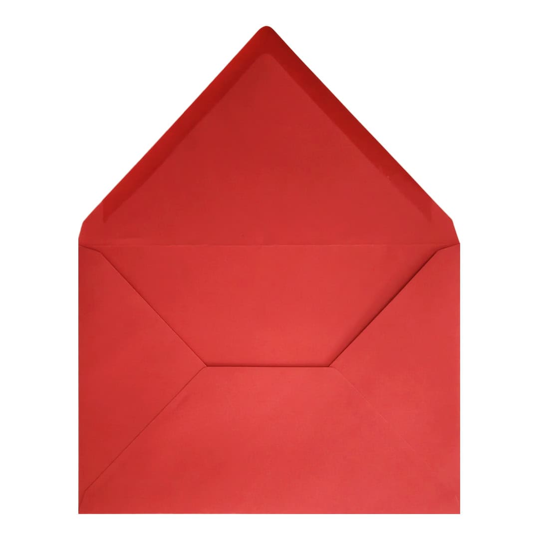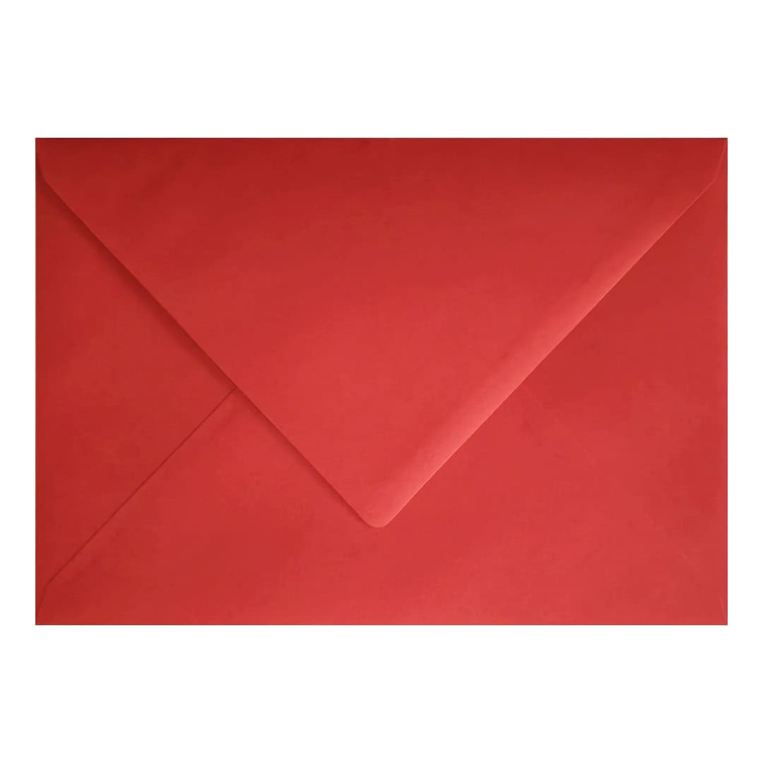 100 Pack – Bright Red C6 Envelopes. Gummed V-Flap. Red 120gsm Smooth Finish. 114mm x 162mm.
