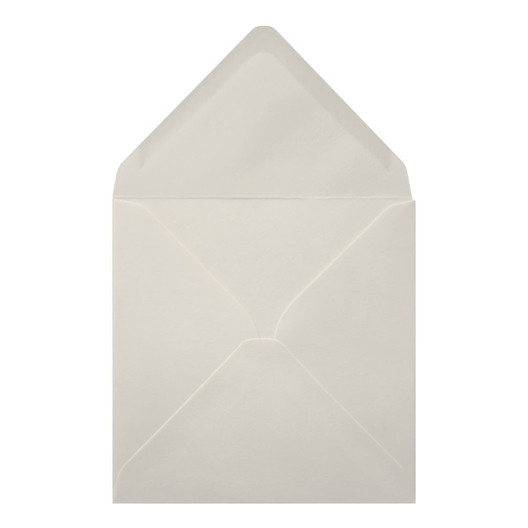 White Envelope. Square Envelopes. Subtle off white tones in a luxuriously thick stock. 130mm x 130mm. Diamond Gummed. Individual.