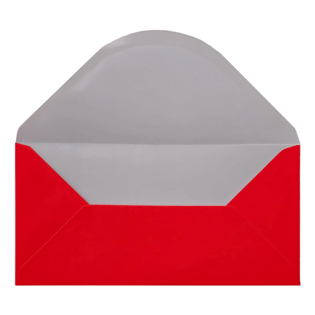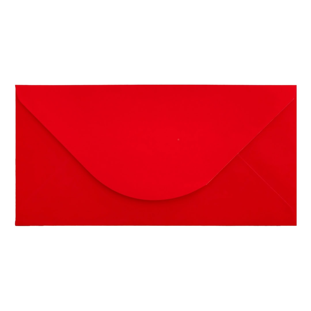 100 Pack – Electric Red DL Envelopes. Gummed V-Flap. Red 100gsm Smooth Finish. 110mm x 220mm.
