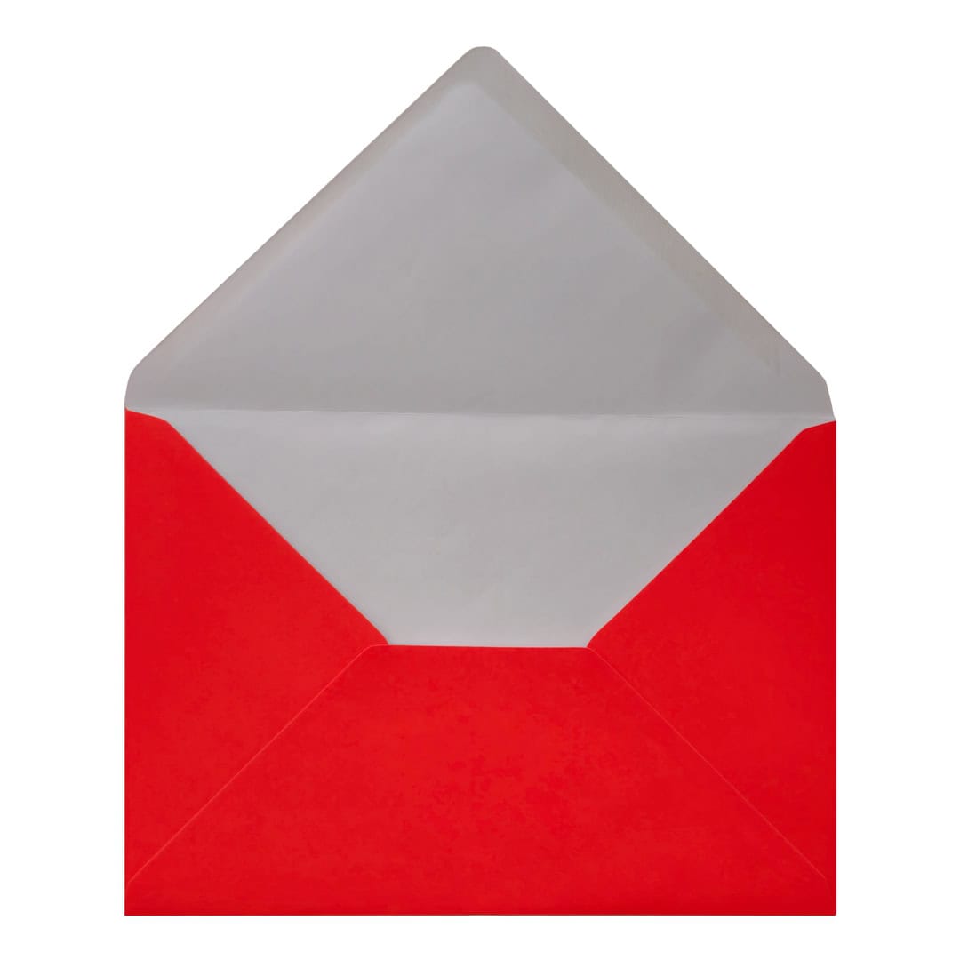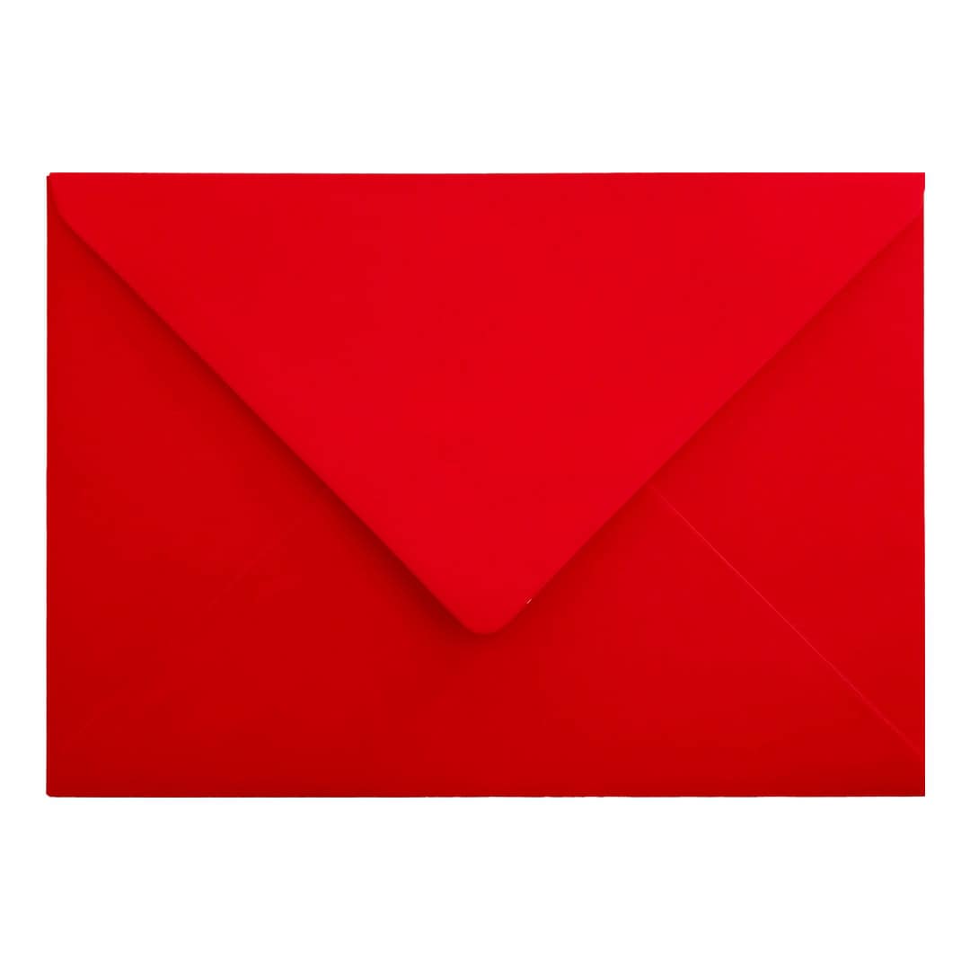 100 Pack – Electric Red C6 Envelopes. Gummed V-Flap. Red 100gsm Smooth Finish. 114mm x 162mm.